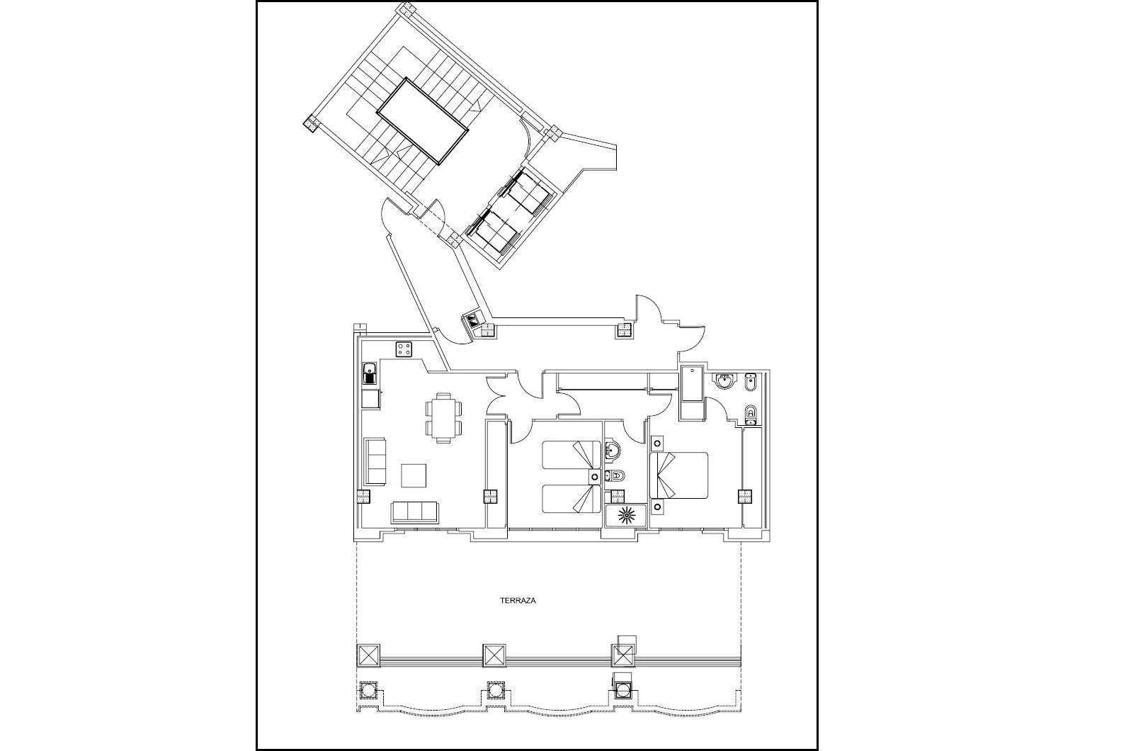 Fabulous 2 bedroom 2 bath penthouse with an enormous sunny terrace. This is a must see in the center of Valencia. All of the main rooms open onto the terrace- Fantastic location next to the main shopping district and the downtown business zone. Doorman building and every amenity.
